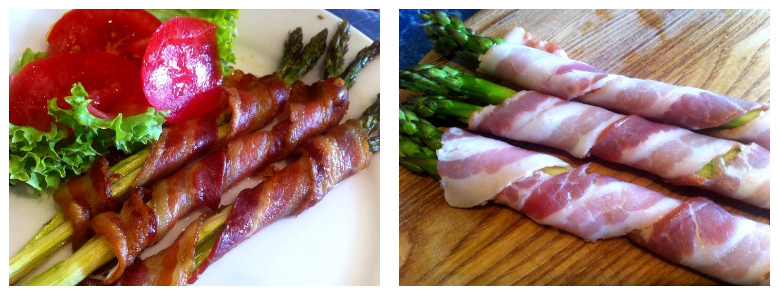 Semmi más nem kell hozzá mint néhány szál spárga (lehet a fehér is), só, bors, szeletelt bacon szalonna és kevés olíva olaj.